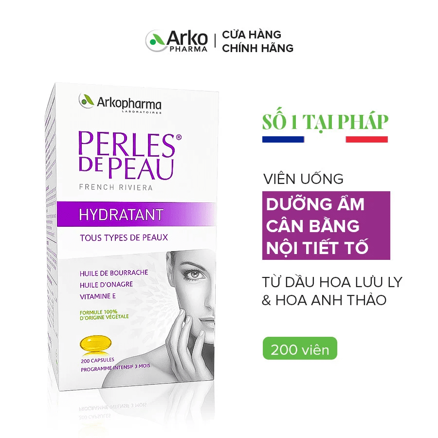 Viên uống tinh dầu hoa anh thảo và hoa lưu ly PERLES DE PEAU HYDRATANT là sự kết hợp ấn tượng của 500mg tinh dầu hoa lưu ly cùng 500mg tinh dầu hoa anh thảo và 20mg vitamin E.