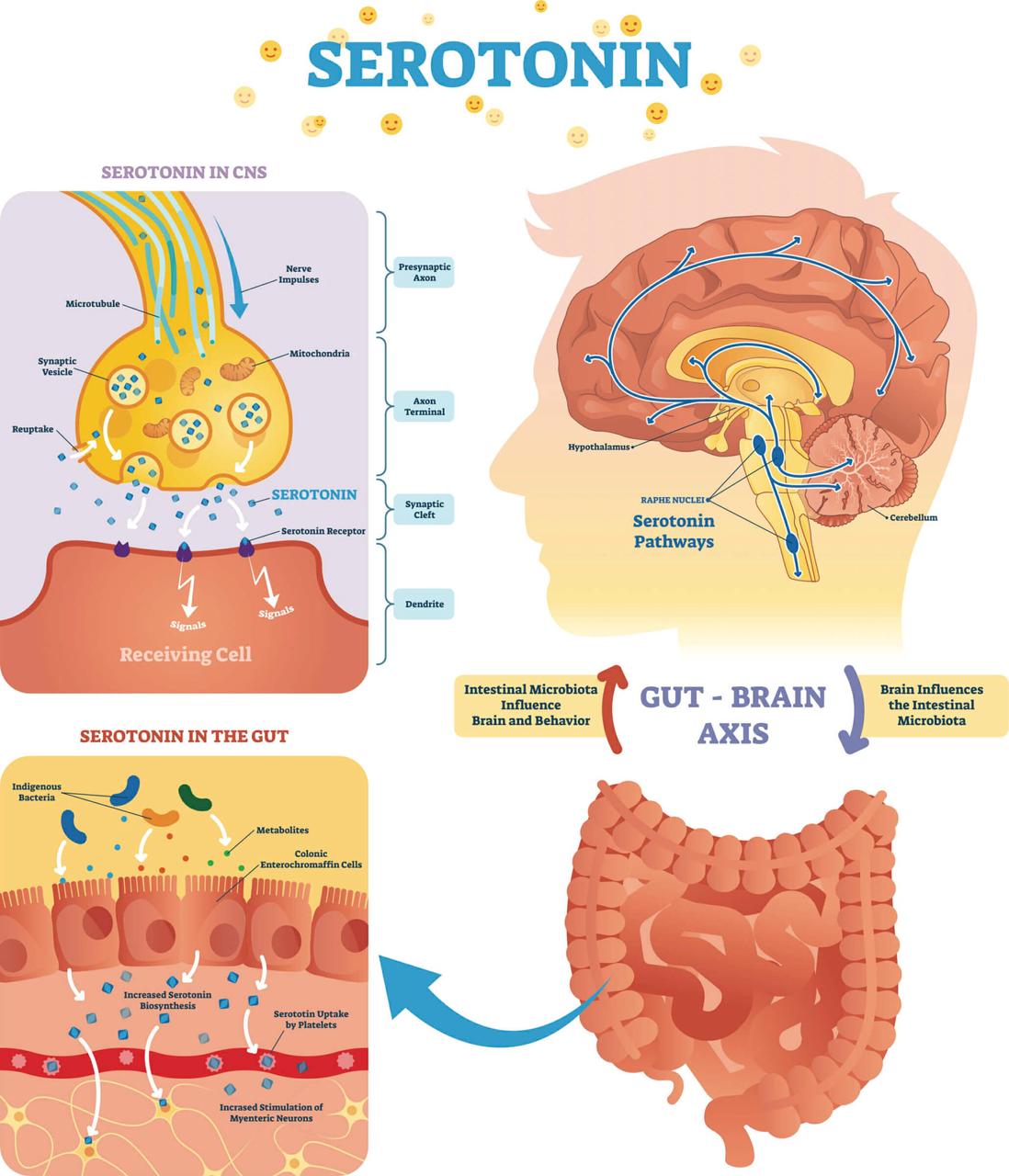 Những năm gần đây, đã có khá nhiều nghiên cứu cho thấy mối liên quan mật thiết giữa hệ tiêu hóa và sức khỏe tinh thần, thường được gọi là trục não – ruột. Cụ thể, hệ vi sinh trong đường ruột sản xuất và ảnh hưởng đến các chất dẫn truyền thần kinh như serotonin và dopamine, có vai trò quan trọng trong việc điều chỉnh tâm trạng và cảm xúc. Sự phát triển quá mức của vi khuẩn có hại trong ruột cũng có thể tạo ra các chất gây viêm, có thể ảnh hưởng đến chức năng não và góp phần tạo nên các tình trạng lo âu và trầm cảm. Việc giữ cho đường ruột khỏe mạnh nhờ tác động của Lactobacillus giúp cho sức khỏe tinh thần cũng tốt hơn.