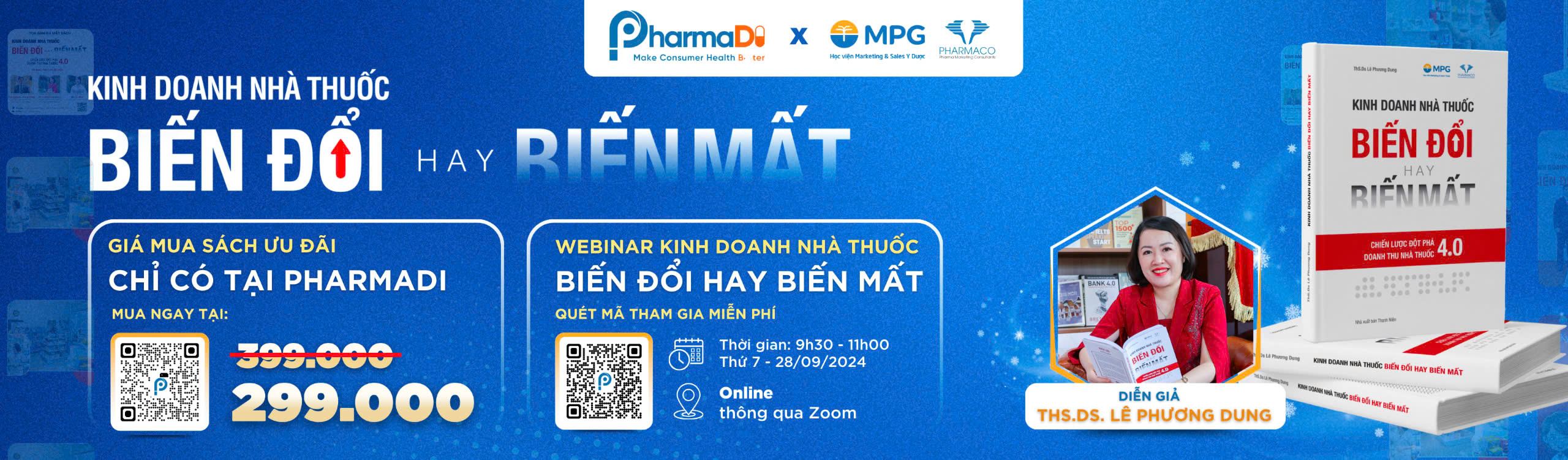 Nhân dịp ra mắt cuốn sách, PharmaDi và Pharmaco Agency cũng phối hợp tổ chức buổi Webinar đặc biệt cho cộng đồng Nhà thuốc với chủ đề: Kinh doanh Nhà thuốc: BIẾN ĐỔI hay BIẾN MẤT. Sự kiện sẽ diễn ra vào ngày 28/9/2024 và diễn giả chính là ThS.Ds Lê Phương Dung – tác giả của cuốn sách.