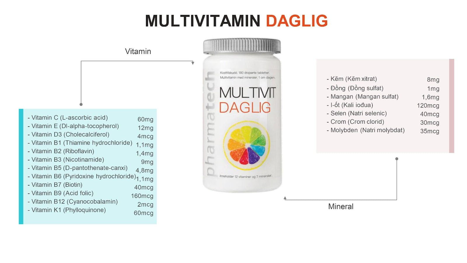 - Multivit Daglig được sản xuất theo tiêu chuẩn Châu Âu với chứng nhận FDA Hoa Kỳ.