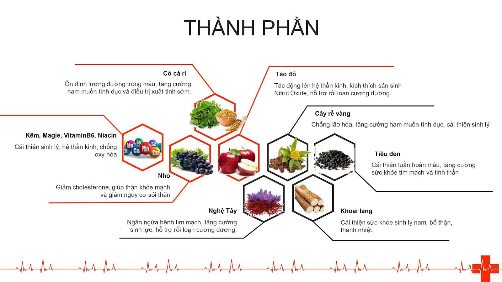 Đàn ông trên 30 tuổi mỗi năm suy giảm khoảng 1% nồng độ testosterone, từ đó sức khỏe tổng thể đi xuống. Một số vấn đề về sức khỏe nam giới có biểu hiện như không thể cương, cương không đủ cứng, cứng không đủ lâu, xuất tinh sớm, xuất tinh không hết, đau khi xuất tinh; hoặc mất cơ, tăng mỡ, giảm khối lượng xương, rụng tóc, lão hóa da và mệt mỏi mất ngủ,…