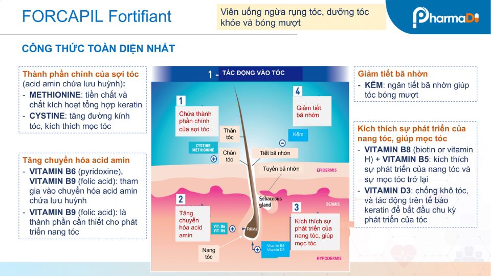 3. Phần cuối của tài liệu sẽ cung cấp thêm cho nhà thuốc chi tiết về cách tư vấn sử dụng các thực phẩm chức năng chuyên dành riêng cho tóc, hiểu về thành phần, các nghiên cứu và thử nghiệm liên quan đến tác dụng của sản phẩm trên tóc.